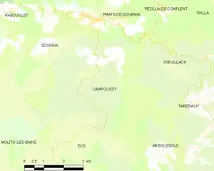 Campoussy is located in the canton of La Vallée de l'Agly and in the arrondissement of Prades.