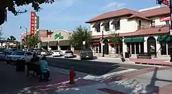 Throughout the 1930s the area continued to grow with the addition of new restaurants, cleaners, and a department store.[5] In 1947 the Boomer Theater was constructed at 765 Asp Avenue.[5] Originally a movie theater, in its later years the Boomer Theater became a concert venue before finally being remodeled for use as a department store/office space during the 1980s.[5]