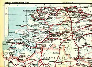 On the north side of Middelburg, the Canal through Walcheren follows the bed of the Havenkanaal (New Harbor Canal) of 1817.[5] In Middelburg the canal passed along the fortifications. Here it led to the demolishment of the Vlissingen Gate. In Vlissingen the canal was connected to extensive new harbour works.