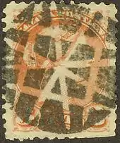 A cancellation (or cancel for short; French: oblitération) is a postal marking applied on a postage stamp or postal stationery to deface the stamp and to prevent its reuse. Cancellations come in a huge variety of designs, shapes, sizes, and colors. Modern cancellations commonly include the date and post office location where the stamps were mailed, in addition to lines or bars designed to cover the stamp itself. The term "postmark" refers specifically to the part that contains the date and posting location, but the term is often used interchangeably with "cancellation" as it may serve that purpose.[1] The portion of a cancellation that is designed to deface the stamp and does not contain writing is also called the "obliteration"[2] or killer. Some stamps are issued pre-cancelled with a printed or stamped cancellation and do not need to have a cancellation added. Cancellations can affect the value of stamps to collectors, positively or negatively. Cancellations of some countries have been extensively studied by philatelists, and many stamp collectors and postal history collectors collect cancellations in addition to the stamps themselves.