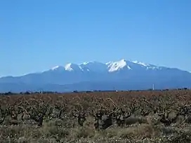 The Canigó is located in Pyrénées-Orientales, south of Prades and north of Prats-de-Mollo-la-Preste. Its summit lies on the border between two communes: Vernet-les-Bains and Taurinya (although the territories of two other communes - Casteil and Valmanya - approach quite closely to the summit).[3] Its location makes it visible from the plains of Roussillon and from Conflent in France, and as well from Empordà in Spain.[4]