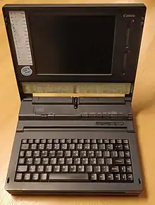 The Canon NoteJet is a series of notebook computers which include a printer and scanner that was manufactured from 1993 to 1995 by a joint venture between the Canon subsidiary Canon Computer Systems Inc.[1] and IBM subsidiary IBM Japan.[2][3][4][5][6] The Canon branded series was sold worldwide except in Japan, where the similar IBM ThinkPad 555BJ and 550BJ was sold. The European model did not use the NoteJet branding and was branded as the Canon BN120C, BN22 or BN200.