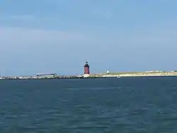 During World War II, the U.S. Army built Fort Miles at Cape Henlopen. Numerous bunkers, concrete observation towers and the pier built to accommodate the laying of mines on the harbor floor remain today. Within the park grounds are a handful of fire control towers from that era, as well as underground gun batteries (bunkers) which were to be used in conjunction with the towers against the eventuality of air attack.[4] Off the coast on the bay side are two lighthouses: the Harbor of Refuge Light and the Delaware Breakwater East End Light.[5]