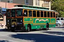 Capital Metro's Dillo service was a circulator service in downtown Austin. In May 2000, the Dillo service went through a major restructuring. It was shut down in 2009 after over 30 years of operation due to low ridership.[28] The service used forest-green trolley buses with an armadillo painted on the side. It was free until shortly before to its closure when Capital Metro began charging a 50¢ fare.[29]