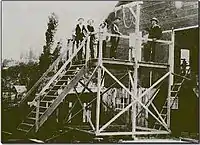 Hanging was the method prescribed by law from 1860 to 1921. The venue of executions moved from the counties to Nevada State Prison in 1903. In response to Mormon preferences,[6] the Nevada State Legislature passed a statute in 1910 that became effective in January 1911,[7] allowing condemned prisoners to choose between execution by shooting or hanging.[8] On May 14, 1913, Andriza Mircovich became the only inmate in Nevada to be executed by shooting.[9] After the warden of Nevada State Prison was unable to find five men to form a firing squad,[10] a shooting machine was built to carry out Mircovich's execution.[11] A law in 1921 made the gas chamber the sole means of execution. It was used from the 1924 execution of Gee Jon to the 1979 execution of Jesse Bishop, both at Nevada State Prison.