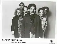 A prodigy sculptor in his childhood,[7][8][9] Van Vliet developed an eclectic musical taste during his teen years in Lancaster, California, and formed "a mutually useful but volatile" friendship with musician Frank Zappa, with whom he sporadically competed and collaborated.[10] He began performing with his Captain Beefheart persona in 1964 and joined the original Magic Band line-up, initiated by Alexis Snouffer, the same year. The group released their debut album Safe as Milk in 1967 on Buddah Records. After being dropped by two consecutive record labels they signed to Zappa's Straight Records, where they released 1969's Trout Mask Replica; the album would later rank 58th in Rolling Stone magazine's 2003 list of the 500 greatest albums of all time.[11] In 1974, frustrated by a lack of commercial success, he pursued a more conventional rock sound, but the ensuing albums were critically panned; this move, combined with not having been paid for a European tour, and years of enduring Beefheart's abusive behavior, led the entire band to quit.[12]