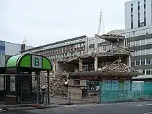 Redevelopment of the bus station began in 2008.[8] Demolition of the old terminal buildings (between stand A and Wood Street stands) started on 11 January 2008, with buses instead picking up at Castle Street and Westgate Street. On 6 May 2008, Stand A at the bus station closed for demolition of the terminal buildings.[9] As of 4 January 2009, some services reverted to using the bus station, whilst others remained split between the alternative terminal points.[10]