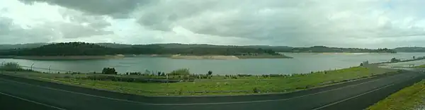 Cardinia Reservoir is an Australian man-made water supply saddle dam reservoir. The 287,000 ML (63 billion imp gal; 76 billion US gal) water store is located in Emerald–Clematis–Dewhurst in south-eastern suburbs of Melbourne, Victoria. Construction started in May 1970 and was completed in 1973 at a cost of more than A$11.4 million.[2][3][4][5][6] The dam that creates the impoundment is called the Cardinia Dam.