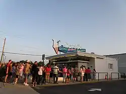 Carl Sponseller founded Carl's Frozen Custard stand in 1947.[5] The original building was registered as a National Landmark and is an official register of Historic Places in 2005. Since 1947, the 1940s, Electro Freeze machines have produced frozen custard daily. Custard differs from ice cream because it contains eggs and sells only three flavors, Vanilla, Chocolate, and Strawberry. When Carl retired, he passed it to his brothers, Paul Sponseller and Herbert Sponseller. When they retired, it was passed to Ramona Sponseller (Settle), Daniel Sponseller, and Cristina Sponseller (McCann), keeping it in the family. The stand has what can only be called a devoted following, so the line of customers often stretches around the building, even in bad weather.[6][7] Carl's is seasonal, and closed each year from the Sunday before Thanksgiving until the Friday of Presidents Day Weekend.