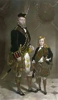 The Honourable Caroline Henrietta Stuart was the youngest child of Robert Walter, 11th Lord Blantyre, of the family of the Stuarts of Minto.[3] Aged 20, on 12 August 1850 she married John Charles Ogilvy-Grant who, then styled Lord Reidhaven and Master of Grant, was heir to the Seafield and Findlater estates. Their only child, Ian Charles was born 7 October 1851. On 30 July 1853 John Charles succeeded his father as Earl of Seafield and Chief of the Clan Grant.[4] Her husband and son were to die within a few years of each other: Lord Seafield on 18 February 1881 and Ian Charles on 31 March 1884.[5]