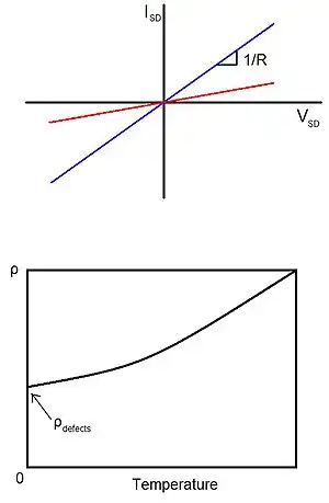 In a similar experiment, one can just lower the temperature of the conductor (Figure 3) so that phonon density decreases to negligible allowing defect dominant resistivity. With this case, σ = ne2τ /m* can be used to directly calculate τ for defect scattering.