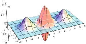 The larger the value of α, the lower the overlap between the two macroscopic classical coherent states exp(−2α2), and the better it approaches an ideal cat state. However, the production of cat states with a large mean photon number (= |α|2) is difficult. A typical way to produce approximate cat states is through photon subtraction from a squeezed vacuum state.[12][13] This method usually is restricted to small values of α, and such states have been referred to as Schrödinger "kitten" states in the literature. A method to generate a larger cat state using homodyne conditioning on a number state splitted by a beam splitter was suggested and experimentally demonstrated with a clear separation between the two Gaussian peaks in the Wigner function.[14] More methods have been proposed to produce larger coherent state superpositions through multiphoton subtraction,[15] through ancilla-assisted subtraction,[16] or through multiple photon catalysis steps.[17] Optical methods to "breed" cat states by entangling two smaller "kitten" states on a beamsplitter and performing a homodyne measurement on one output have also been proposed[18] and experimentally demonstrated.[19] If the two "kittens" each have magnitude then when a probabilistic homodyne measurement on the amplitude-quadrature of one beamsplitter output yields a measurement of Q = 0, the remaining output state is projected into an enlarged cat state where the magnitude has been increased to [18][19]
