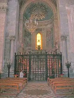 The apse dates back to the original 12th-century construction: it features a medieval mullioned window and a late-16th-century choir by the Neapolitan artist Scipione di Guido. At the end of the north transept is the Chapel of the Holy Crucifix, by Domenico Mazzola (1577). It houses the tombs of members of the Aragonese branch of Sicily, including Kings Frederick III and Louis, John of Randazzo, and Constance.