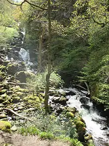 The Lodore Falls, a must-see for Victorian tourists staying at Keswick, are formed by the beck from Watendlath Tarn cascading over huge boulders for a distance of some 100 feet. The main drop of the falls is about 28 metres, or 90 feet. Although the falls are spectacular after periods of heavy rain, they dry to a trickle in periods of prolonged dry weather.