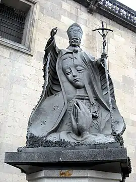 The title Mother of the Church (in Latin Mater Ecclesiae) was officially given to the Virgin Mary during the Second Vatican Council by Pope Paul VI.[97] This title goes back to Ambrose of Milan in the 4th century, but this use was not known until its 1944 rediscovery by Hugo Rahner.[97][98] Rahner's Mariology, following Ambrose, saw Mary in her role within the church, his interpretation being based solely on Ambrose and the early Fathers.[98]