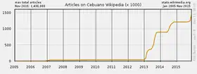 - "Cebuano Wikipedia, Wikidata:Statistics/Wikipedia". Wikidata. 2015-07-17. Retrieved 2016-01-16.