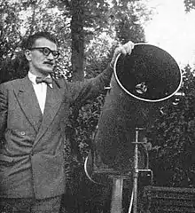Moore, however, immediately denied being responsible for Allingham's book, and threatened to take legal action against anyone suggesting otherwise, although he took no such action on any of the three articles mentioned above. Moore, who died in 2012, never confirmed his involvement in the affair, even though the telescope, background foliage and portion of shed shown in the book's portrait of Allingham bears a remarkable resemblance to the 12½-inch reflector telescope in Moore's own garden, as shown in a photograph in Moore's Observer Book of Astronomy, 1971 edition, and in film footage.[9]