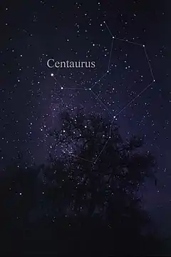 According to the Roman poet Ovid (Fasti v.379), the constellation honors the centaur Chiron, who was tutor to many of the earlier Greek heroes including Heracles (Hercules), Theseus, and Jason, the leader of the Argonauts. It is not to be confused with the more warlike centaur represented by the zodiacal constellation Sagittarius. The legend associated with Chiron says that he was accidentally poisoned with an arrow shot by Hercules, and was subsequently placed in the heavens.[2]