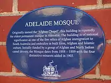 - "Adelaide Mosque". State Library of South Australia. SA Memory: Religion in South Australia. Retrieved 4 June 2019.