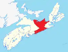 Central Nova (French: Nova-Centre) is a federal electoral district in Nova Scotia, Canada that was represented in the House of Commons of Canada from 1968 until 1996. In 1996, Antigonish County and part of Guysborough County were placed with Pictou County in a new electoral boundaries configuration to form the electoral district of Pictou-Antigonish-Guysborough. A new version of Central Nova was established in 2003[2] and — in conjunction with the Pictou-Antigonish-Guysborough iteration — represented a significant electoral boundaries change with specific reference to Antigonish County. Between 1867 and 1997, Antigonish County was not in a riding that included Pictou County; rather, it comprised either its own electoral district (Antigonish), or part of other districts shared with Eastern Nova Scotia (Antigonish-Guysborough)[3] and Cape Breton Island communities (Cape Breton Highlands Canso, 1968–1997).[4] In 2013, part of Antigonish County was "placed back" with communities in the electoral district of Cape Breton Canso,[5] a riding which had emerged in part from the former Cape Breton Highlands Canso riding in 1996.[5] The current version of Central Nova includes Pictou County, parts of Antigonish and Guysborough Counties (including the Town of Antigonish and the Municipality of the District of St. Mary's) and extends into Halifax Regional Municipality.[6]