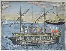When the Portuguese first came to Malacca, they found a large colony of Javanese merchants under their own headmen; they were manufacturing their own cannon, which is deemed as important as sails in a ship.[25] Duarte Barbosa recorded the abundance of gunpowder-based weapons in Java ca. 1514. The Javanese were deemed as expert gun casters and good artillerymen. The weapon found there include one-pounder cannons, long muskets, spingarde (arquebus), schioppi (hand cannon), Greek fire, guns (cannons), and other fire-works.[26]: 254 [27]: 198 [28]: 224 When Malacca fell to the Portuguese in 1511 A.D., breech-loading swivel guns (cetbang) and muzzle-loading swivel guns (lela and rentaka) were found and captured by the Portuguese.[29]: 50 In 1513, the Javanese fleet led by Pati Unus, sailed to attack Portuguese Malacca "with much artillery made in Java, for the Javanese are skilled in founding and casting, and in all works in iron, exceeding what they have in India".[15]: 162 [30]: 23