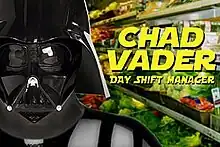 Chad Vader (Aaron Yonda/voiced by Matt Sloan) is the show's central character. He is the day shift manager of Empire Market. Sometimes using lines lifted from the Star Wars films (the main source of humor being Chad going about day-to-day life while retaining a behavior befitting of a Sith lord), Chad's main goal is to crush Empire Market's competition and help make the store dominate the food retailing industry. However, as Season 2 progresses along, Chad follows Randy's orders to "ditch" the Star Wars attitude and become more normal. The new leader announces that everyone has a chance to be General Manager. His main goal morphs into a great ambition to become General Manager (which he succeeds in doing the end of Season 3). While he has inappropriate and rocky relationships with most of his co-workers, most notably Clint Shermer, he has better ones with others, such as Jeremy, whom he adopts as his apprentice. Chad implies in the second episode that he is Darth Vader's younger, less successful brother, and that Vader gave Chad a life support suit and helmet similar to his own after Chad accidentally rode his bicycle into a volcano. This fact is mentioned explicitly on the Blame Society website (www.blamesociety.net). Though he uses a red Sith lightsaber as a weapon to threaten opponents and shoplifters, he may not be a Sith; he is never referred to as "Darth", the title given to all members of the Sith order. He is, however, referred to as "Lord Vader" by some characters. Chad had lost touch with his family when they moved to Tatooine without him. LucasArts was impressed by Sloan, and this led to him becoming the new voice actor for Darth Vader. His voice appears in the games Empire at War: Forces of Corruption,[7][8] Soulcalibur IV, and Star Wars: The Force Unleashed.[9] It is also noted that in Star Wars: The Force Unleashed, if the player kills 12 Stormtroopers as Darth Vader during the introduction sequence, they will receive an achievement called "Worst Day Shift Manager Ever".