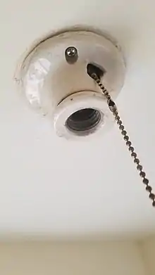 • Lavatory chain, the chain attached to the cistern of an old-fashioned W.C. in which the flushing power is obtained by a gravity feed from above-head height. Although most cisterns no longer work like that, the phrase "pull the chain" is still encountered to mean "flush the toilet".