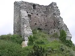 The castle was later abandoned but remained in good condition until the 20th century. In 1856, an attempt to demolish the castle to provide stone for a new church was unsuccessful. However, in the 1930s the hill below the castle was terraced for a vineyard. In 1936 this had undercut the castle enough that much of it collapsed.[2]