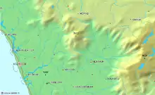 The Chaliyar originates in the Western Ghats range at Ilambaleri hills in the ranges of Nilgiri Mountains of Western Ghats,[5] which is also near Wayanad-Malappuram district border. Chaliyar flows through Malappuram District for most of its length and then for around 17 km it forms the boundary between Malappuram District and Kozhikode District before entering the city of Kozhikode for its final 10 km journey and finally empties into the Lakshadweep Sea at Beypore. Six major streams Chaliyarpuzha, Punnapuzha, Kanjirapuzha, Karimpuzha, Iruvahnipuzha and Thottumukkampuzha constitute the Chaliyar River drainage system. Other important tributaries are Kurumanpuzha, Pandipuzha, Maradipuzha, Kuthirapuzha and Karakkodupuzha. Most of these rivers have their origin in the Nilgiri hills in the east and Wayanad hills in the north, where they form a number of rapids and waterfalls.[5] Near the origin of river are the Meenmutty Falls at coordinates 11.527755°N 76.236534°E by Vaduvanchal, Wayanad