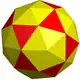 These 12 order-5 vertices can be truncated such that all edges are equal length. The original 30 rhombic faces become non-regular hexagons, and the truncated vertices become regular pentagons.