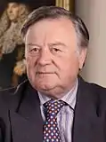 The chancellor, as Master of the Mint, has a robe of office,[23] similar to that of the lord chancellor (as seen in several of the portraits depicted below). In recent times, it has only regularly been worn at coronations, but some chancellors (at least until the 1990s) have also worn it when attending the Trial of the Pyx as Master of the Mint. According to George Osborne, the robe (dating from Gladstone's time in office, and worn by the likes of Lloyd George and Churchill)[24] 'went missing' during Gordon Brown's time as chancellor.[25]