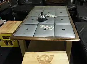 The space itself consists of four rooms: A large lounge-cum-hackerspace, a kitchen, a media room, and a workshop.[7][11] Chaosdorf owns different kinds of equipment to help members fulfilling their projects and offering services.[12]