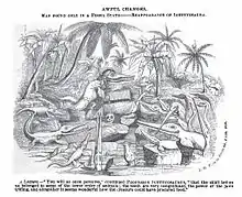 He struggled with the implications for human dignity, and later in 1827 wrote private notes on Lamarck's ideas. Lyell reconciled transmutation of species with natural theology by suggesting that it would be as much a "remarkable manifestation of creative Power" as creating each species separately. He countered Lamarck's views by rejecting continued cooling of the earth in favour of "a fluctuating cycle", a long-term steady-state geohistory as proposed by James Hutton. The fragmentary fossil record already showed "a high class of fishes, close to reptiles" in the Carboniferous period which he called "the first Zoological era", and quadrupeds could also have existed then. In November 1827, after William Broderip found a Middle Jurassic fossil of the early mammal Didelphis, Lyell told his father that "There was everything but man even as far back as the Oolite."[34] Lyell inaccurately portrayed Lamarckism as a response to the fossil record, and said it was falsified by a lack of progress. He said in the second volume of Principles that the occurrence of this one fossil of the higher mammalia "in these ancient strata, is as fatal to the theory of successive development, as if several hundreds had been discovered."[36]