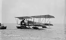 In March 1915 Samson was sent to the Dardanelles with No 3 Squadron (later No 3 Wing); it was based on the island of Tenedos and, together with seaplanes from HMS Ark Royal, initially provided the only Allied air cover.[8] On arrival, it was found that out of 30 aircraft that had been sent in crates, only 5 were serviceable (BE2s and a Nieuport 10).[9] His squadron pioneered the use of radio in directing the fire of battleships and photo-reconnaissance.[10] Samson flew many missions himself and on 25 April at the Landing at Cape Helles, he reported that "the sea was absolutely red with blood to 50 yards out" at Sed-el-Barr ("V Beach").[11] On 27 May, Samson attacked the German submarine U-21, which had just sunk HMS Majestic; when he ran out of bombs he resorted to firing his rifle at it.[12] In June, a temporary airstrip was constructed at Cape Helles; Samson became well known for waving cheerily to the Allied troops in the trenches below.[13] On one occasion, he bombed a Turkish staff car but only succeeded in breaking the windscreen; one of the occupants was Mustafa Kemal, the charismatic Turkish commander and later founder of the Turkish Republic.[14] In August, Samson's wing was moved to a new airfield at Imbros where it was joined by No 2 Wing under the overall command of Colonel Frederick Sykes.[15] who had been given the naval rank of Wing Captain with three years' seniority. Sykes had previously written a critical report of the Gallipoli air operations, which had caused Samson to lobby against Sykes; however, Samson loyally served under Sykes until he was recalled to London in November.[16]
