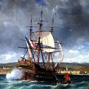 By the late eighteenth century, Royal Navy crews were progressively being trained in the use of artillery in chases. The cannons themselves were also modified to maximise their effectiveness as chase guns, including reshaping of their gun carriages to allow for greater elevation and longer range. From 1799 Royal Navy frigates were universally supplied with two bow and two stern chasers, as these were the vessels most likely to be engaged in the pursuit of fleeing enemies.[1][2][3]
