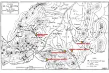 Cheffia is the site of the Roman city of Thullium in the Province of Numidia.[3] The Cheffia valley contains a number of ruins that can be considered as Libyan necropolises. Reboud describes a number thereof, and their Lybic (Libyco-Berber) inscriptions, and published the map shown in this article. The region was slow to christianize, with Thullium not receiving its first bishop until the end of the fifth century; a bishop from there was present at the Council of Carthage in 525.[4][5]