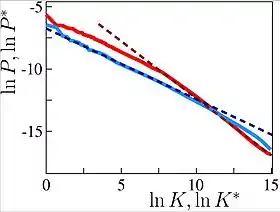 The dependence of on for the network of hyperlink network of Wikipedia English articles is shown in Fig.2 from Zhirov. The distribution of these articles in the plane of PageRank and CheiRank is shown in Fig.3 from Zhirov. The difference between PageRank and CheiRank is clearly seen from the names of Wikipedia articles (2009) with highest rank. At the top of PageRank we have 1.United States, 2.United Kingdom, 3.France while for CheiRank we find 1.Portal:Contents/Outline of knowledge/Geography and places, 2.List of state leaders by year, 3.Portal:Contents/Index/Geography and places. Clearly PageRank selects first articles on a broadly known subject with a large number of ingoing links while CheiRank selects first highly communicative articles with many outgoing links. Since the articles are distributed in 2D they can be ranked in various ways corresponding to projection of 2D set on a line. The horizontal and vertical lines correspond to PageRank and CheiRank, 2DRank combines properties of CheiRank and PageRank as it is discussed in Zhirov.[8] It gives top Wikipedia articles 1.India, 2.Singapore, 3.Pakistan.