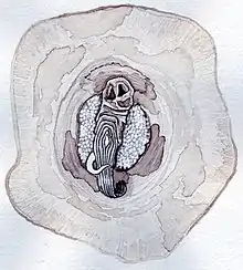 C. testudinaria preferentially behaviorally select green turtles as hosts compared to Chelonibia caretta, which select Hawksbill sea turtles as hosts.[4] On a turtle's shell, the greatest water flow is over the front central portion. It has been shown that C. testudinaria can relocate on the turtle's shell, usually towards the optimal position with maximum water flow and thus the greatest filter feeding opportunities. The movement is around 1.4 mm (0.06 in) or less per day and is probably achieved by advancing the shell forward with each increment of growth. Over several months, several scutes can be crossed by these means.[5]