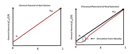 Generally the chemical potential is given as a sum of an ideal contribution and an excess contribution: