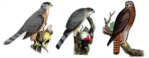 In the United States, chickenhawk or chicken hawk is an unofficial designation for three species of North American hawks in the family Accipitridae: Cooper's hawk, also called a quail hawk, the sharp-shinned hawk, and the Buteo species red-tailed hawk. The term "chicken hawk", however, is inaccurate. Although Cooper's and sharp-shinned hawks do primarily hunt other birds, chickens do not make up a significant part of their diets; red-tailed hawks may opportunistically hunt free-range poultry, but are chiefly predators of mammals such as rodents and rabbits.