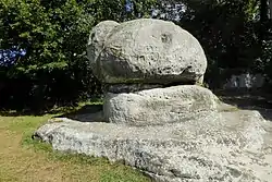 A popular theory is that the village takes its name from a large sandstone rock formation, situated on its outskirts, named the Chiding Stone.[9] Chidingstone was a previous spelling used for the village.[10] The National Trust consider it more likely the name is derived from the homestead of Cidda's family, "Chidding tun". It was recorded as "Cidingstane" in the 12th century. The stone may have been used as a place to remonstrate overbearing local wives, a Druidical ritual site, or an Anglo-Saxon boundary marker.[6]