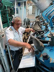 A chief engineer, commonly referred to as "ChEng" or "Chief", is the most senior engine officer of an engine department on a ship, typically a merchant ship, and holds overall leadership and the responsibility of that department.[1] Chief engineer's rank is equivalent to the rank of a ship's captain. As a person who holds one of the most senior roles on the ship, they must have excellent communication and leadership skills. They will be expected to regularly work alongside other crew members and external consultants, and most importantly, provide guidance to their team.