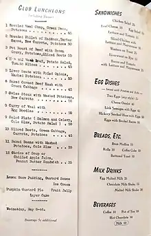 - "1907 Childs Menu". Menu with locations on reverse. New York Public Library. p. 2. Retrieved May 25, 2014.
