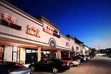 The first businesses of the new Houston Chinatown opened in 1983.[3] In the 1980s increasing numbers of Chinese were living in Southwest Houston and Fort Bend County and those residents were further away from the old Chinatown in what is now East Downtown.[4] Diho Square (traditional Chinese: 頂好廣場; simplified Chinese: 顶好广场; pinyin: Dínghǎo Guángchǎng), home to a Diho Supermarket chain outlet, was built, followed by Dynasty Plaza (王朝商場; 王朝商场; Wángcháo Shāngchǎng) in 1986-1987, a 120,000-square-foot (11,000 m2) complex developed by a Singaporean friend of Diho Supermarket operator Tsang Dat Wong; the latter invited the former to build in Houston. Developers at the time bought land, inexpensive due to the recession, in hopes of prosperous development later.[5] From the 1980s until the 2000s, the census tracts housing sections of Chinatown saw decreasing income levels and real estate values.[6]