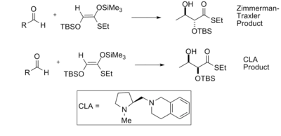 In the aldol reaction, the diastereoselectivity of the product is often dictated by the geometry of the enolate. The Zimmerman-Traxler model predicts that the Z enolate will give syn products, and that E enolates will give anti products. Reactions catalyzed by tin-based CLAs allow products to deviate from this pattern.[9]
