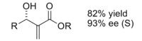 The Baylis-Hillman reaction is a route for C-C bond formation between an alpha, beta-unsaturated carbonyl and an aldehyde, which requires a nucleophilic catalyst, usually a tertiary amine, for a Michael-type addition and elimination. The stereoselectivity of these reactions is usually poor. Lanthanum(III)-containing CLAs have been demonstrated to improve stereoselectivity. Similarly, a chiral amine may also be used to achieve stereoselectivity.[10]