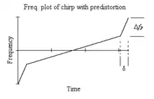 A analogous technique can be applied to the frequency characteristic of the chirp waveform by adding linear FM distortion segments (quadratic phase modulation distortion) to the frequency characteristic of the chirp, as shown. The method is effective because amplitude and phase distortions having functional similarity can produce similar effects when the distortion factors are small.[20][22]