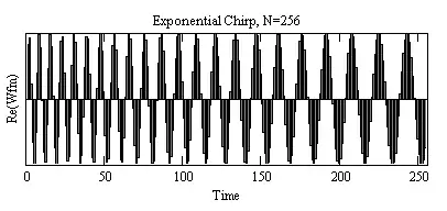 As an example, an exponential chirp (with its top frequency well below the Nyquist limit) is sampled at 256 points, as shown.
