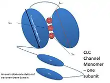 The CLC channel structure has not yet been resolved, however the structure of the CLC exchangers has been resolved by x-ray crystallography. Because the primary structure of the channels and exchangers are so similar, most assumptions about the structure of the channels are based on the structure established for the bacterial exchangers.[5]
