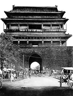 During the Yuan dynasty, the gate was called Wenmingmen (文明門). Because the residence of the Mongol prince Hada was located close by, the gate was also popularly known as Hadamen (traditional 哈達門, simplified 哈大門) or Hademen (traditional 哈德門, simplified 哈德门).[1] The name Hademen survived well into the twentieth century, and was even the name of a popular cigarette brand. The Hademen Hotel now overlooks where the gate once stood. To the east of Chongwenmen, the Ming City Wall Relics Park has the best preserved remaining section of Beijing's Ming city wall.
